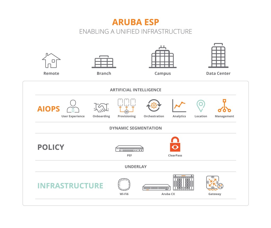 Aruba, a Hewlett Packard Enterprise company (NYSE: HPE), today introduced Aruba ESP (Edge Services Platform), the industry’s first AI-powered, cloud-native platform that predicts and resolves problems at the network edge before they happen. Built on AIOps, Zero Trust network security, and a Unified Infrastructure for campus, data center, branch and remote worker locations, Aruba ESP delivers an automated, all-in-one platform that continuously analyzes data across domains, ensures SLAs, identifies anomalies and self-optimizes, while seeing and securing unknown devices on the network. Aruba ESP is designed to deliver a cloud experience at the edge and can be consumed either as a service in the cloud or on-premises, as a managed service delivered through Aruba partners, or via network as a service through HPE GreenLake. Tailored for varying economic requirements, customers may also procure it with flexible financing options via HPE Financial Services.