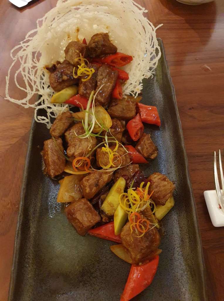 Shang Palace also honours traditional Cantonese cuisine with Cheung Fun, a thin rice noodle roll that is filled with protein. The art of this dish is that it should be slightly transparent to slightly reveal the filling and the edges have to be lined up to be even. The dish looks pretty but not as superb as the dim sum which I prefer much more.
