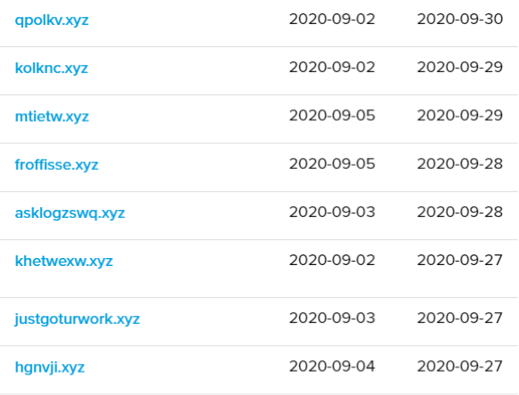 Figure 7: Example drop-zone domains used for phishing attacks