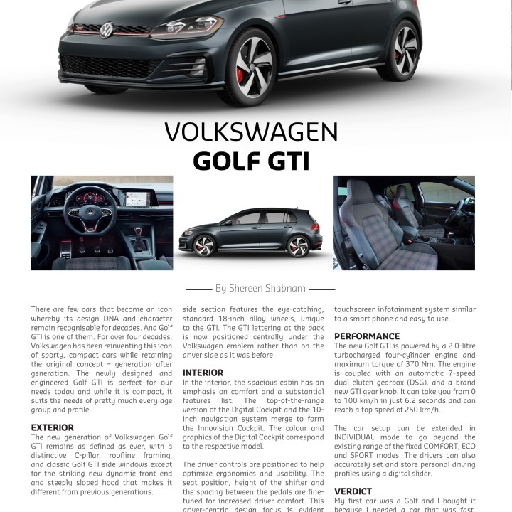 By Shereen Shabnam There are few cars that become an icon whereby its design DNA and character remain recognisable for decades. And Golf GTI is one … Continue reading Volkswagen Golf GTI
