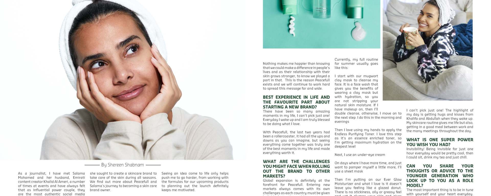 Salama has spoken about her skin being super sensitive a number of times and she sought to create a skincare brand to take care of the skin during all seasons. We find out more about Peacefull and Salama’s journey to becoming a skin care brand owner.