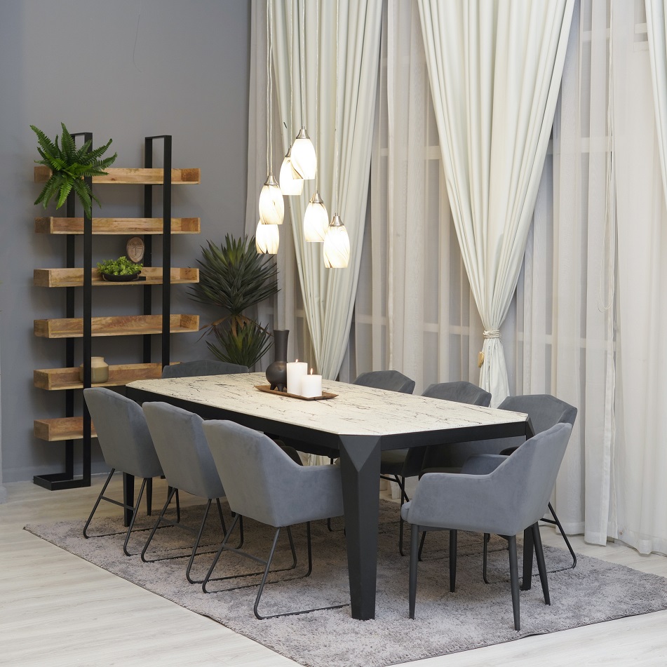 If you believe in making a subtle statement, our BENBROOK DINING TABLE is tailor-made for you. Crafted from premium quality material, it features a tempered glass top set atop a strong metallic underframe and legs for optimal support and durability. The spacious tabletop can accommodate up to 6 people making it perfect to serve up festive feasts and casual dinners. Price: 1,595 AED