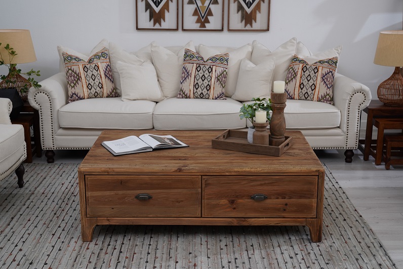 Flaunting a natural wooden texture and detailed with spacious pull-out drawers and metal handles, our Southland Coffee Table lends a rustic appeal to your interior. Bring home this piece and define your living room with its timeless charm. Price: 1695 AED