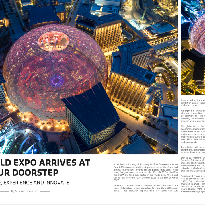 Explore, Experience and Innovate By Shereen Shabnam It has been a journey of discovery the last few months as an Expo 2020 volunteer and learning about … Continue reading The World Expo Arrives at our Doorstep