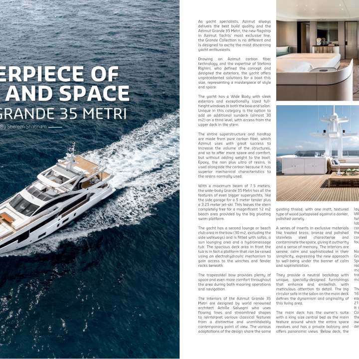 By Shereen Shabnam As yacht specialists, Azimut always delivers the best build quality and the Azimut Grande 35 Metri, the new flagship in Azimut Yachts’ most … Continue reading Masterpiece of Style and Space: Azimut Grande 35 Metri