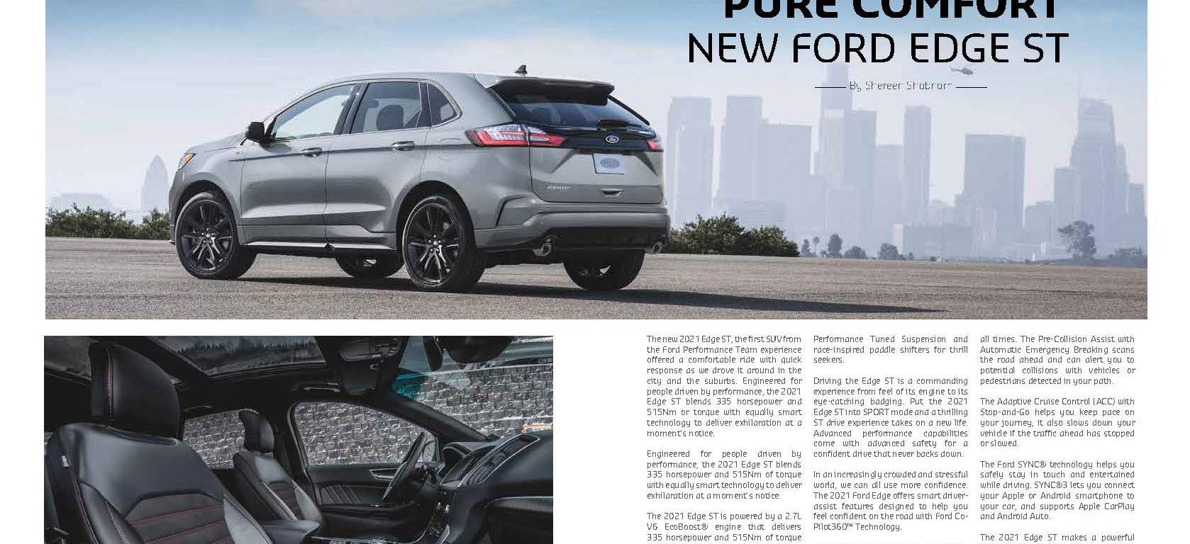 The new 2021 Edge ST, the first SUV from the Ford Performance Team experience offered a comfortable ride with quick response as we drove it around in the city and the suburbs. Engineered for people driven by performance, the 2021 Edge ST blends 335 horsepower and 515Nm or torque with equally smart technology to deliver exhilaration at a moment’s notice.