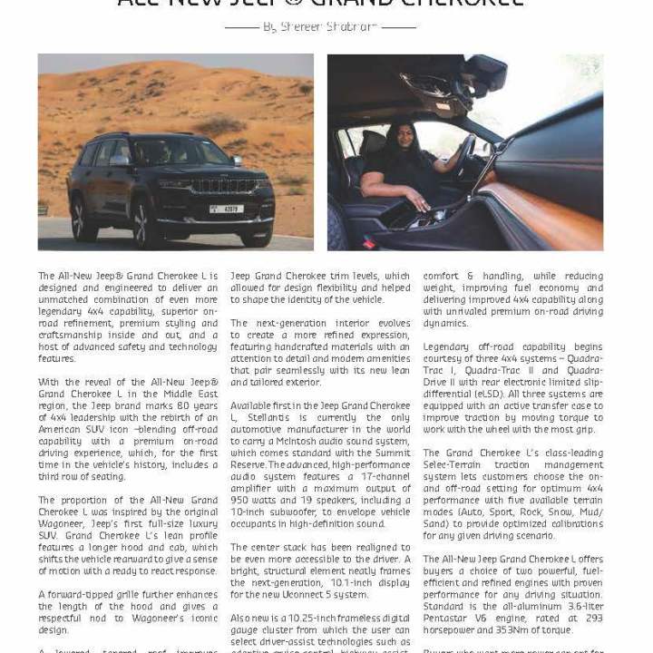 All-New Jeep® Grand Cherokee Shereen Shabnam The All-New Jeep® Grand Cherokee L is designed and engineered to deliver an unmatched combination of even more legendary 4×4 capability, … Continue reading Legendary 4×4 capability with comfort