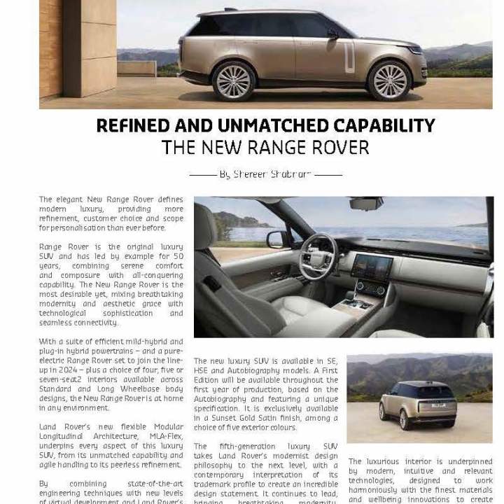 Shereen Shabnam The elegant New Range Rover defines modern luxury, providing more refinement, customer choice and scope for personalisation than ever before. Range Rover is the … Continue reading Refined and Unmatched Capability: The New Range Rover