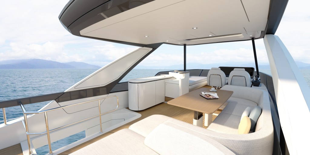 The new model of the Flybridge collection is designed in collaboration with Alberto Mancini for the exteriors and Achille Salvagni for the interiors. Thanks to the shipyard’s in-depth knowledge of the market and owners from all over the world, Azimut Yachts designed a 21 meters yacht that adapts to the desires of contemporary owners who increasingly insists on bespoke solutions even for smaller boats.