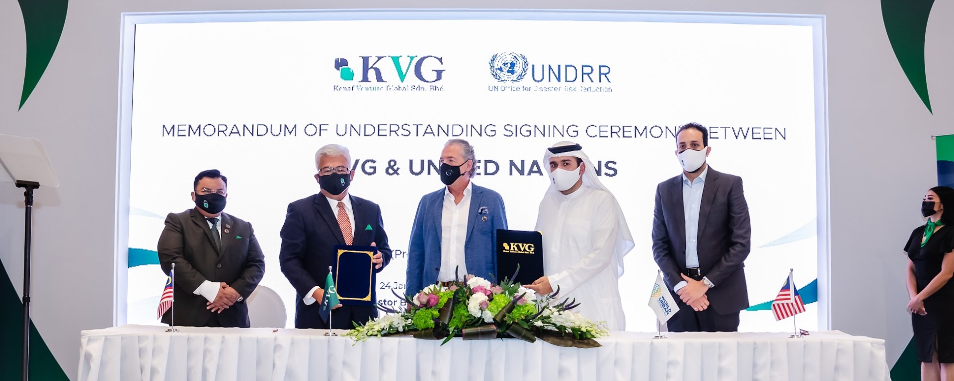 To combat carbon footprint and help nurture sustainability for the global community, Kenaf Venture Global Sdn. Bhd. (KVG) signed a Memorandum of Understanding (MoU) with the Chairman, UNDDR – Arise UAE and WUC Middle East Leader, Dr Mahmoud ElBurai, in the presence of KVG Group President, Mr. Azman Ahmad, KVG Group CEO, Jazman Shahar Abdollah, the President of FIABCI Asia Pacific and the Vice President of Real Estate Indonesia (REI), Rusmin Lawin.