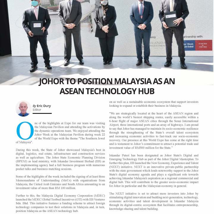 Eric Dury One of the highlights at Expo for our team was visiting the Malaysian Pavilion and attending the activations by the dynamic operations team. We … Continue reading Johor to Position Malaysia as an ASEAN Technology Hub