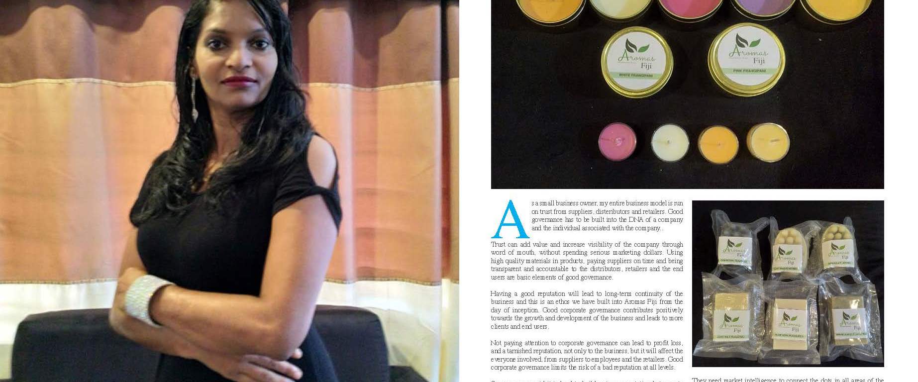 Having a good reputation will lead to long-term continuity of the business and this is an ethos we have built into Aromas Fiji from the day of inception. Good corporate governance contributes positively towards the growth and development of the business and leads to more clients and end users.