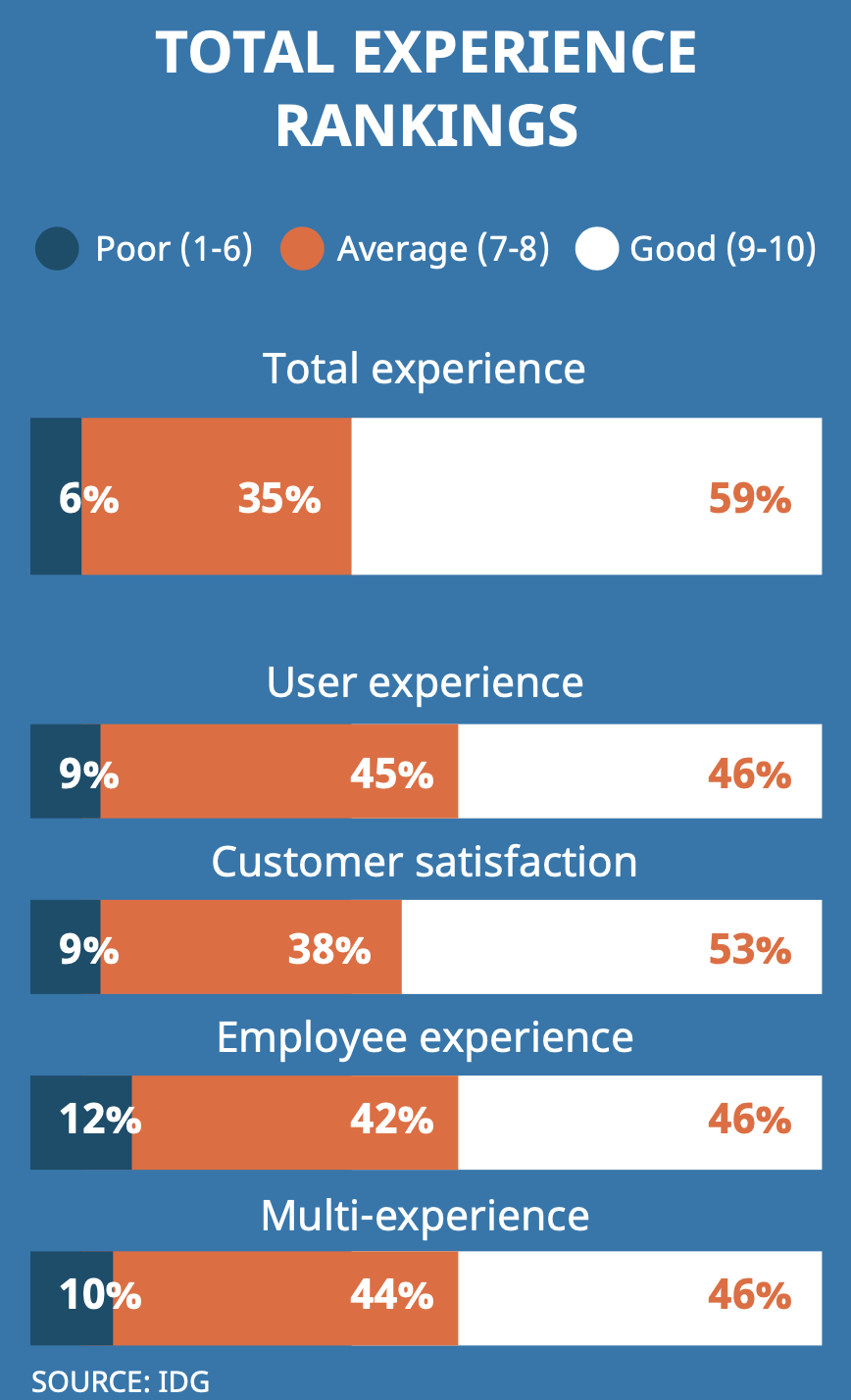 A Global study conducted by IDG Communications found that over half of MENA enterprises believe they offer a ‘good’ Total Experience. However, many businesses struggle to deliver on the individual facets that make up Total Experience: Customer, Employee, User and Multiexperience.