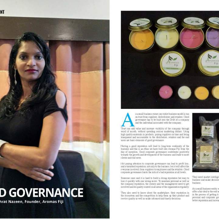 Nishrat Nazeen, Founder, Aromas Fiji As a small business owner, my entire business model is run on trust from suppliers, disteributors and retailers. Good governance has … Continue reading Good Governance