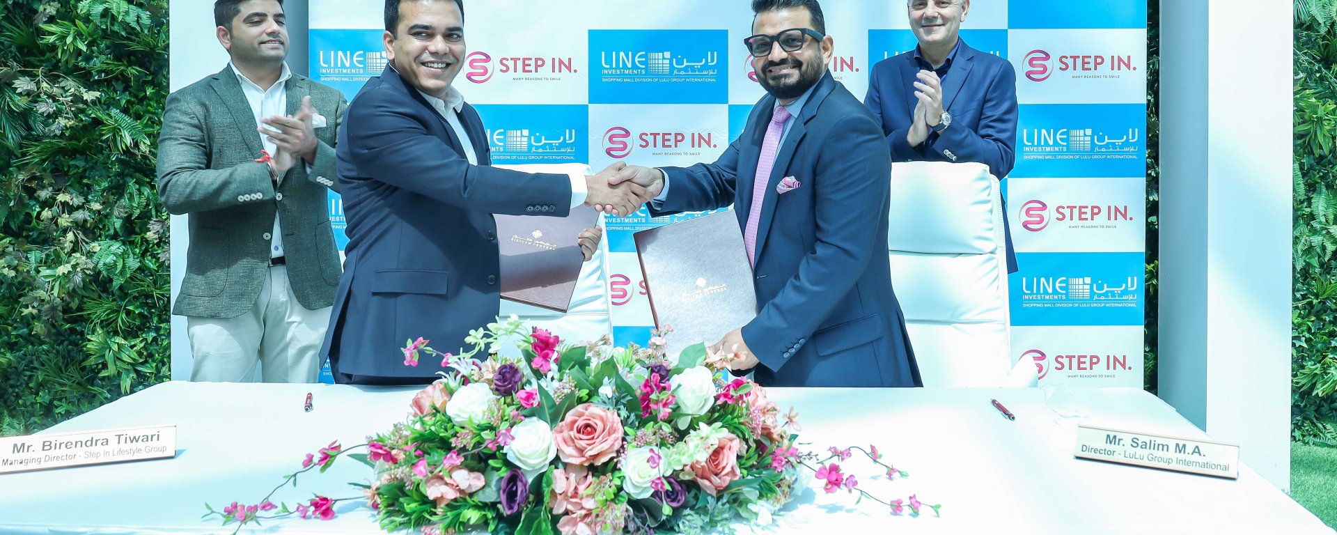 The shopping mall and management division of Lulu Group International, Line Investments & Property, signs an agreement with Step In Group to bring on board five new brands, Bella Maison, Calliope, DeFacto, FLO and Penti to Silicon Central, Dubai’s new lifestyle destination.