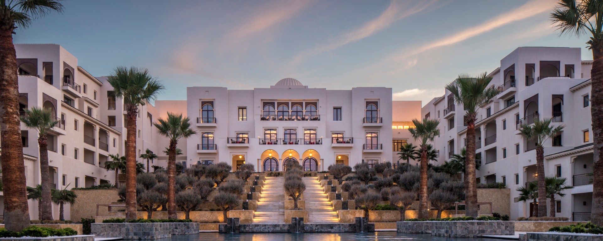 The hillside and seaside hotel features contemporary Arabesque architecture and design details that includes mashrabiya latticework screens and is in close proximity to several Unesco World Heritage Sites, the city, Medina and artisan souks.