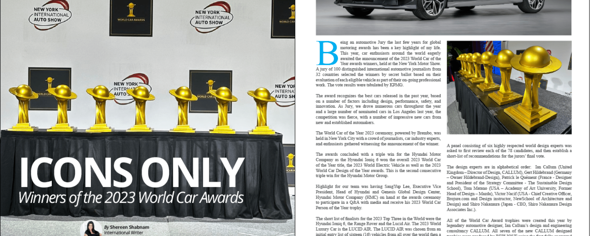 Being an automotive Jury the last few years for global motoring awards has been a key highlight of my life. This year, car enthusiasts around the world eagerly awaited the announcement of the 2023 World Car of the Year awards winners, held at the New York Motor Show.
