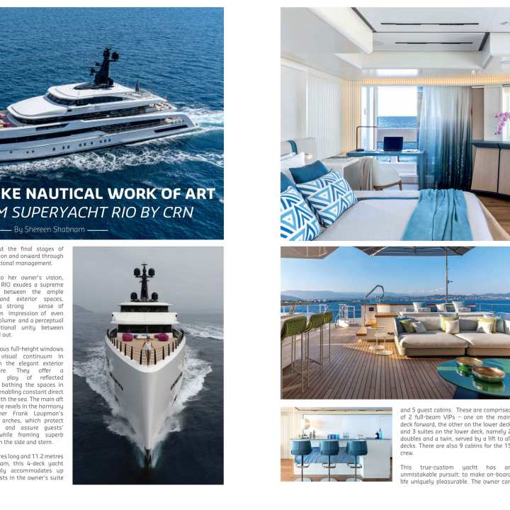 The New 62m Superyacht RIO by CRN Shereen Shabnam During a recent visit to Ancona, we learnt about the magnificent CRN M/Y RIO is the latest … Continue reading A Fully Bespoke Nautical Work of Art