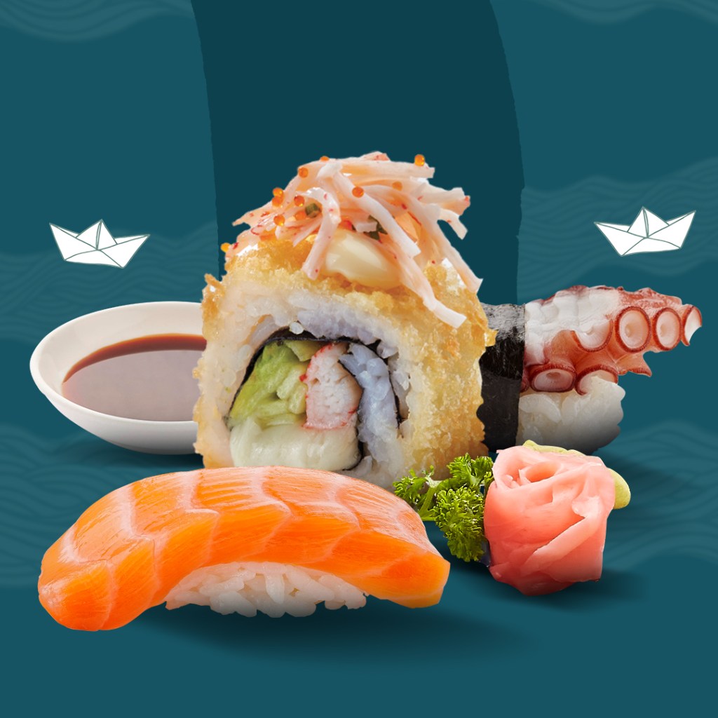 Get a delicious sushi fix with 8 pieces of sushi rolls and 2 pieces of nigiri for just AED 55.00. Available for delivery and pickup and dine-in from June 1st-30th.