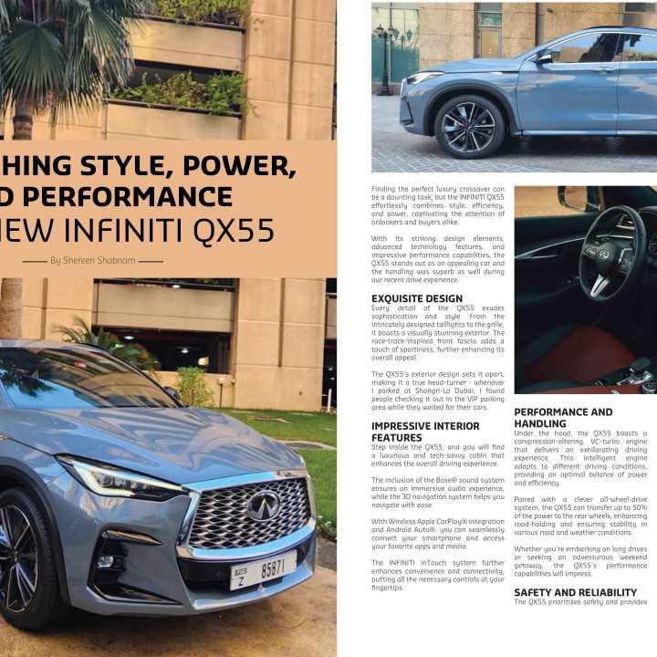 Shereen Shabnam Finding the perfect luxury crossover can be a daunting task, but the INFINITI QX55 effortlessly combines style, efficiency, and power, captivating the attention of … Continue reading Unleashing Style, Power, and Performance: The New Infiniti QX55