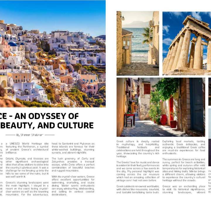 Shereen Shabnam Greece in the summer is a mesmerizing destination that offers a perfect blend of ancient history, breathtaking landscapes, vibrant culture, and exquisite cuisine. Despite … Continue reading Greece – An Odyssey of History, Beauty, and Culture
