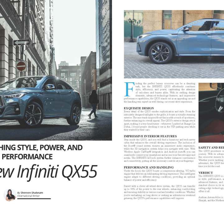 By Shereen Shabnam Finding the perfect luxury crossover can be a daunting task, but the INFINITI QX55 effortlessly combines style, efficiency, and power, captivating the attention … Continue reading Unleashing Style, Power, and Performance: The New Infiniti QX55