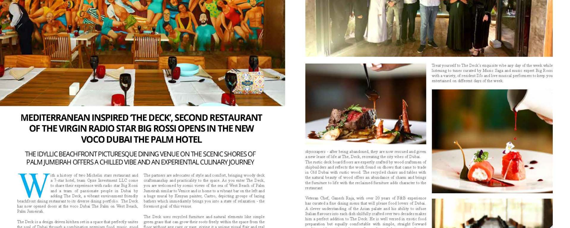 With a history of two Michelin stars restaurant and a 7-star hotel, team Opxe Investment LLC come to share their experience with radio star Big Rossi and a team of passionate people in Dubai by adding The Deck, a vibrant environment friendly beachfront dining restaurant to its diverse dining portfolio. The Deck has now opened doors at the voco Dubai The Palm on West Beach, Palm Jumeirah.