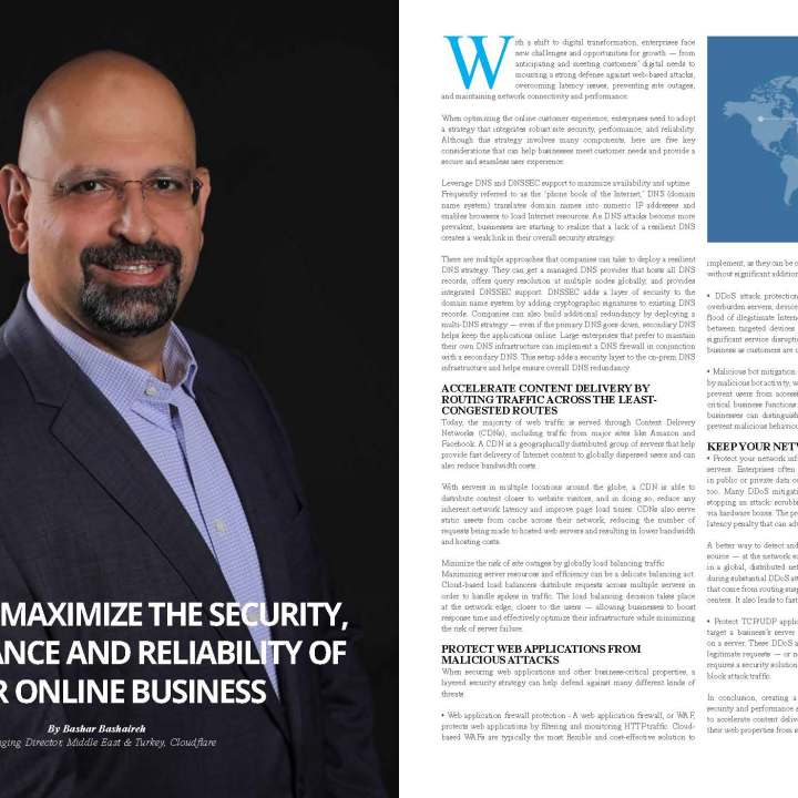 By: Bashar Bashaireh, Managing Director, Middle East & Turkey, Cloudflare With a shift to digital transformation, enterprises face new challenges and opportunities for growth — from … Continue reading 5 Ways to Maximize the Security, Performance and Reliability of Your Online Business