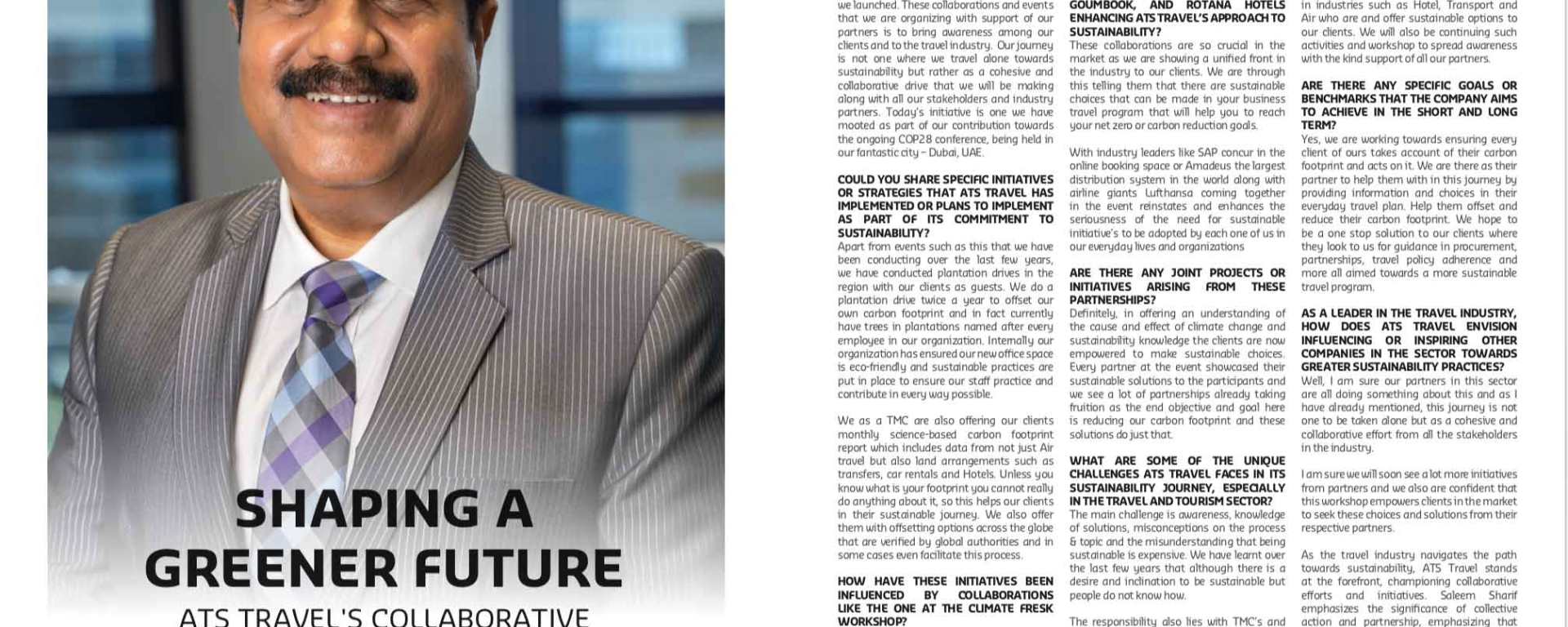 As the travel industry navigates the path towards sustainability, ATS Travel stands at the forefront, championing collaborative efforts and initiatives. Saleem Sharif emphasizes the significance of collective action and partnership, emphasizing that sustainability isn’t a solitary journey but a collective endeavor involving stakeholders, clients, and partners. Through workshops like Climate Freak and ongoing collaborations, ATS Travel continues to pave the way, not just for their own sustainability goals, but to inspire and drive the industry towards a future where eco-conscious practices are at the heart of every travel endeavor.
