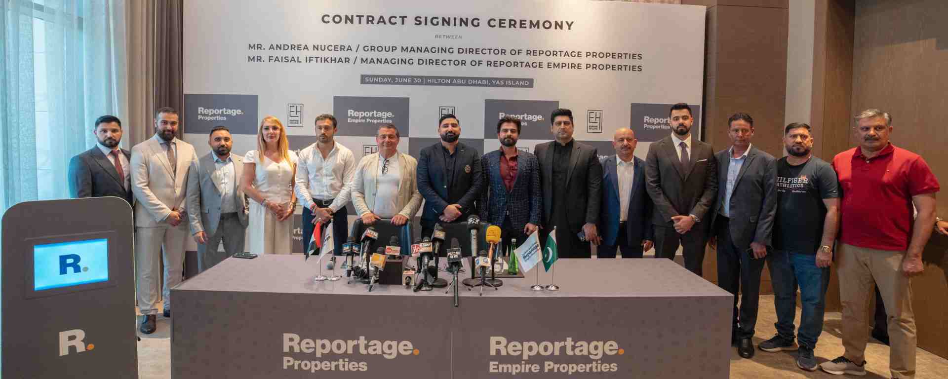 Reportage Properties, the UAE leading real estate developer, headquartered in Abu Dhabi, signed an agreement with Empire Holding Pakistan, the leading residential and commercial real estate company based in Lahore, Pakistan, to launch a joint venture in the booming Pakistani real estate market.