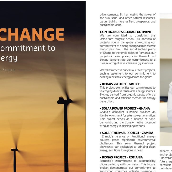 Powering Change: Exim Finance’s Global Commitment to Renewable Energy