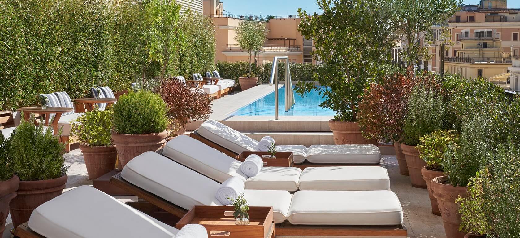 The hotel’s social energy flows through three distinctive bars: Punch Room, where low lighting and rich walnut create an intimate hideaway for craft punches; Jade Bar, a jewel-box destination celebrating seasonal cocktails; and The Roof, an elegant rooftop oasis with panoramic views over the Pantheon and the city’s iconic skyline. Here, a travertine plunge pool and Mediterranean-inspired dishes capture the best of Roman summer.