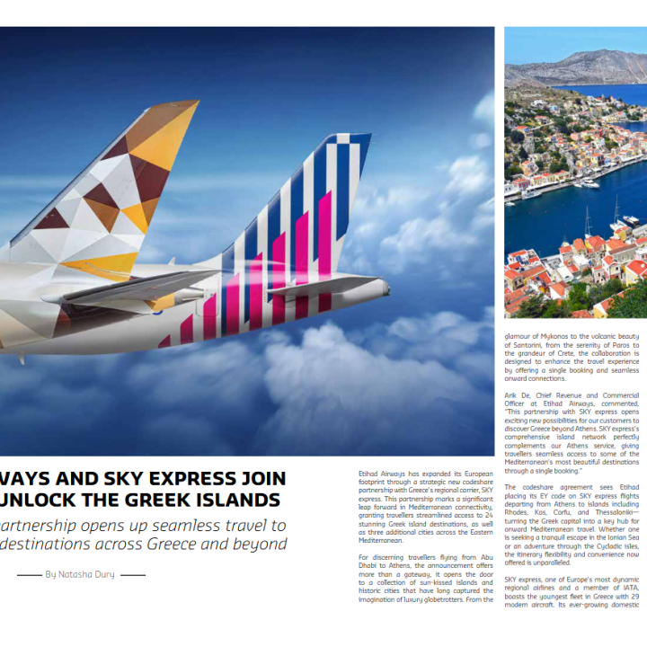 New codeshare partnership opens up seamless travel to 24 breathtaking destinations across Greece and beyond Natasha Dury Etihad Airways has expanded its European footprint through a … Continue reading Etihad Airways and SKY express Join Forces to Unlock the Greek Islands
