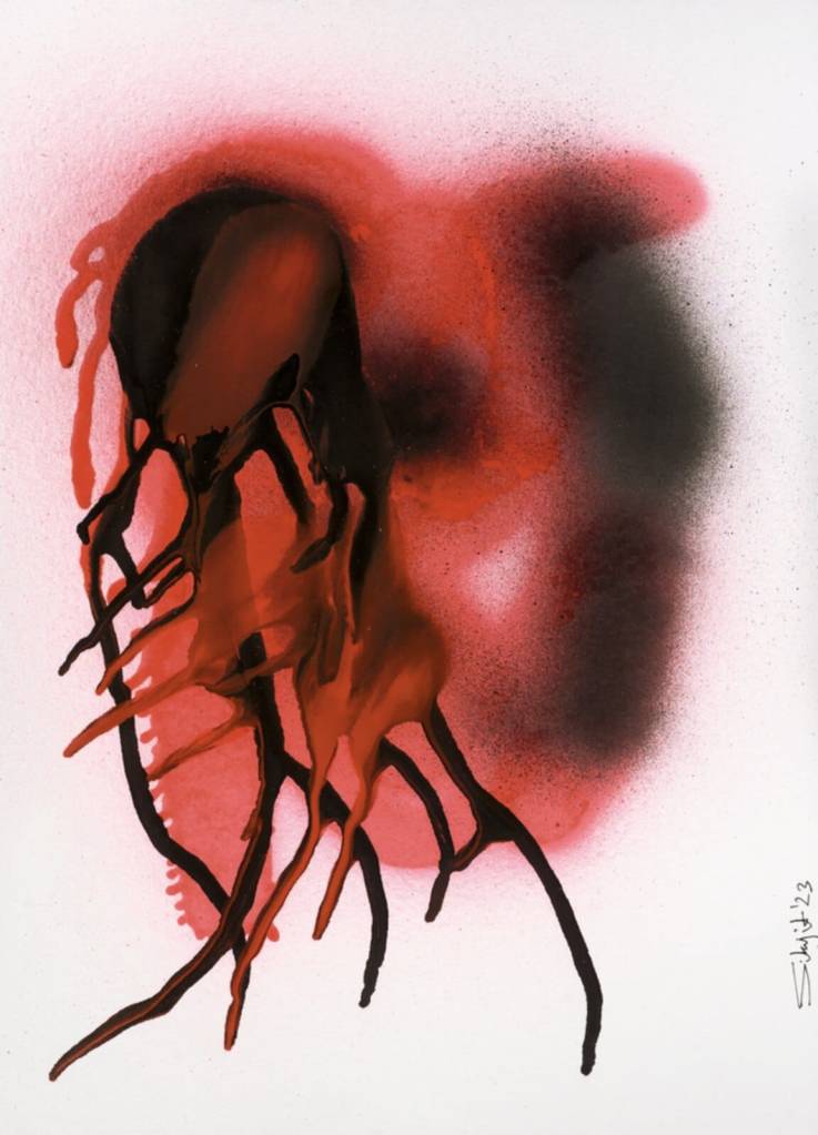Silajit’s paintings explore the essence of reality rather than its literal representation. His dynamic use of colour — from powerful blacks reminiscent of Vantablack to lyrical reds symbolising love and energy, to blues conveying serenity and depth — evokes emotions rather than depictions. His works feel like waves, each with its own rhythm and spiritual undertone, capturing vitality, positivity, and a profound sense of harmony.