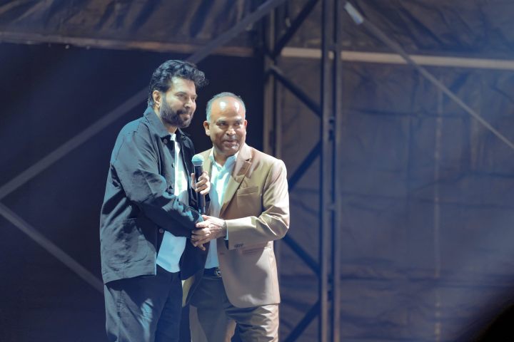 The celebrations marking Fragrance World’s presence in 150 countries began with a grand event at Expo City Dubai. The celebration logo was unveiled through a spectacular drone show that painted the sky with colors and narrated the history of Fragrance World, carrying the digital signature of Chairman and Founder Poland Moosa. The logo was unveiled in the presence of popular Indian film actor Mammootty, CEO P. V. Salam, Joint CEO P. V. Safeer, and Mr. Labeeb. This was followed by the premiere of the docu-fiction film “Kunjon,” based on the life of Poland Moosa. The film was directed by Jeevan Jose and shot across several foreign countries, featuring nearly 200 actors in major and minor roles. It is scheduled to be released on digital platforms in the coming days. The cover of the book “Fragrance of Legacy,” written by Sebin Paulose based on the biography of Poland Moosa, was also unveiled on stage. The author, along with his friend Abdulla who inspired the work, was present at the event.