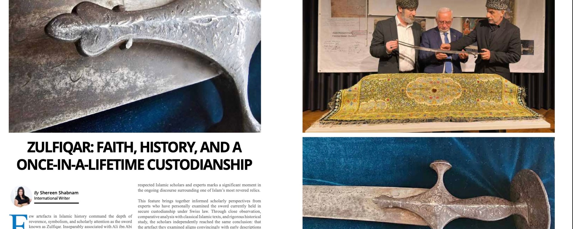 This feature brings together informed scholarly perspectives from experts who have personally examined the sword currently held in secure custodianship under Swiss law. Through close observation, comparative analysis with classical Islamic texts, and rigorous historical study, the scholars independently reached the same conclusion: that the artefact they examined aligns convincingly with early descriptions of Zulfiqar and cannot be dismissed as a later symbolic or decorative reproduction.