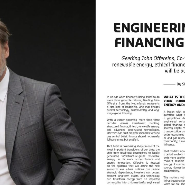 Geerling John Offereins, Co-founder of TDD International on renewable energy, ethical finance, and why the post-fossil economy will be built at source Shereen Shabnam In an … Continue reading Engineering Energy & Financing the Future