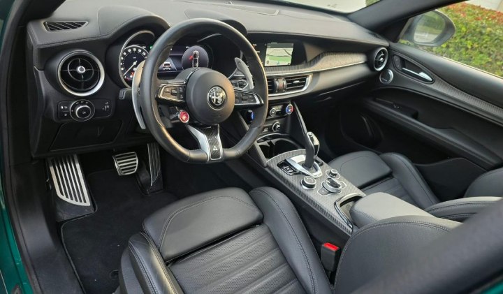 Inside, the Stelvio delivers a cabin that is more driver-focused than flashy. This is not an interior designed to overwhelm with gimmicks or oversized screens. Instead, it feels purposeful, stylish and unmistakably Alfa. The seating position is excellent, the steering wheel feels just right in your hands, and details like the heated leather sporty steering wheel and aluminium gear shift paddles immediately hint at the car’s more spirited personality.